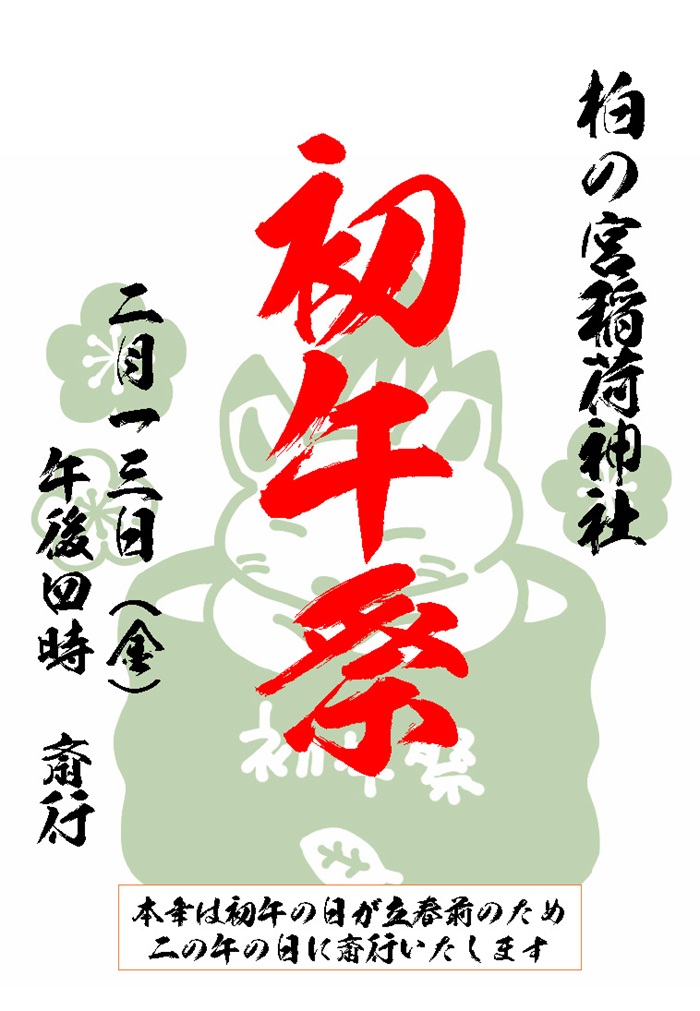 八幡神社では初午の時期に各社祭典を行っております。柏の宮稲荷神社と田中稲荷神社は八幡神社にて管理をしており、吉守稲荷神社は吉田家、浜田山稲荷神社は安藤家の邸内社としてご家族の皆様によって管理されております。